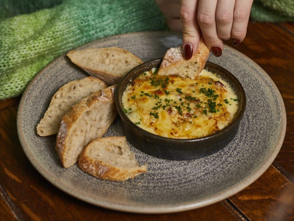 Our chefs have crafted a decadent four-cheese fondue that’s as rich and indulgent as you can imagine. A velvety blend of Beaufort, Tomme du Jura, Emmental and Comté, melted with Kirsch and white wine for that perfect silky texture.
