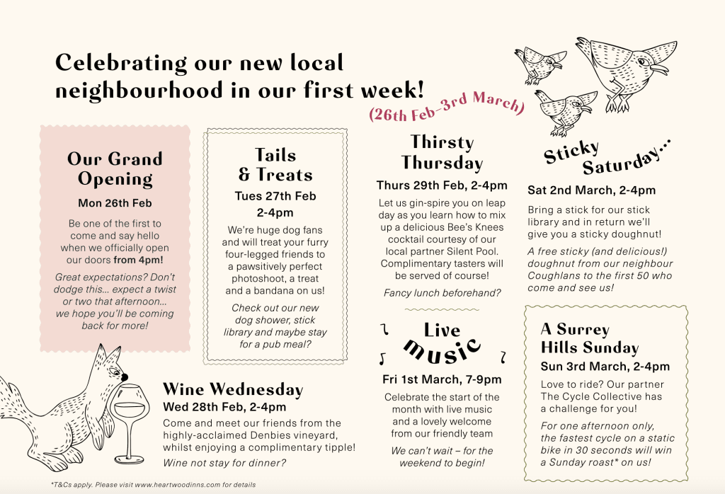 With only a few sleeps to go until we open the doors to our first pub with rooms, we have seven days of activities planned for our White Horse guests to enjoy and we’d love you to join us to celebrate this momentous occasion. From gin and wine tastings from Denbies and Silent Pool Gin, live music and cycle challenges, there is something for everyone…