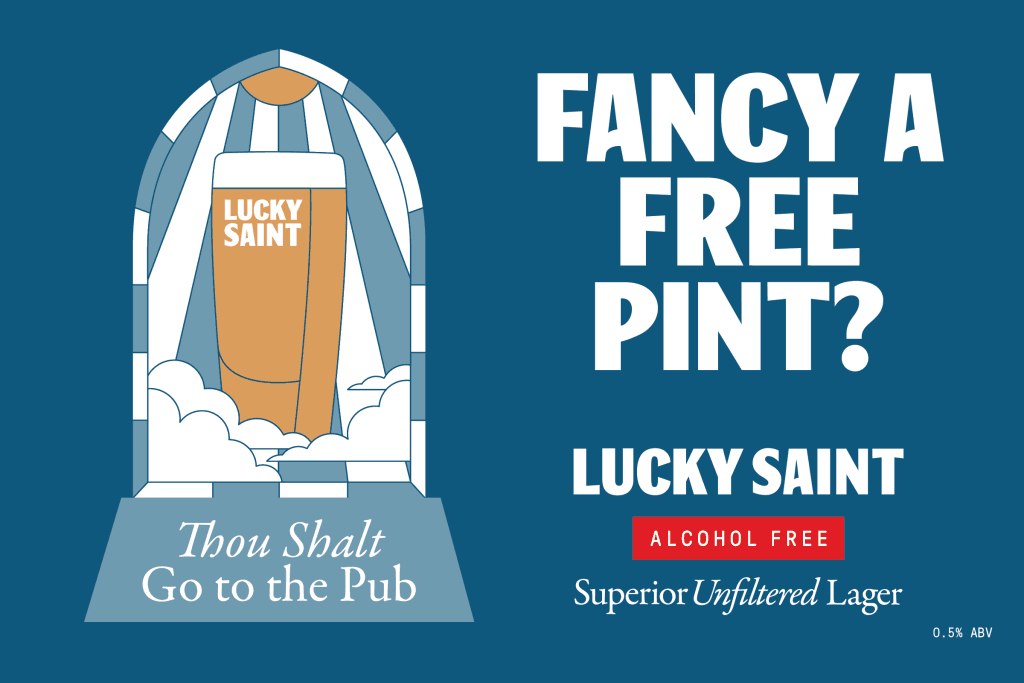 Go to luckysaint.co to claim your free pint of Lucky Saint draught, redeemable at The Boot in Histon.