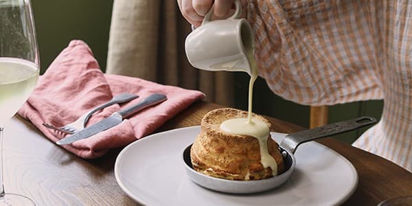 Our twice-baked cheese soufflé is an iconic dish here at The Boot – light, airy, and so utterly delicious.