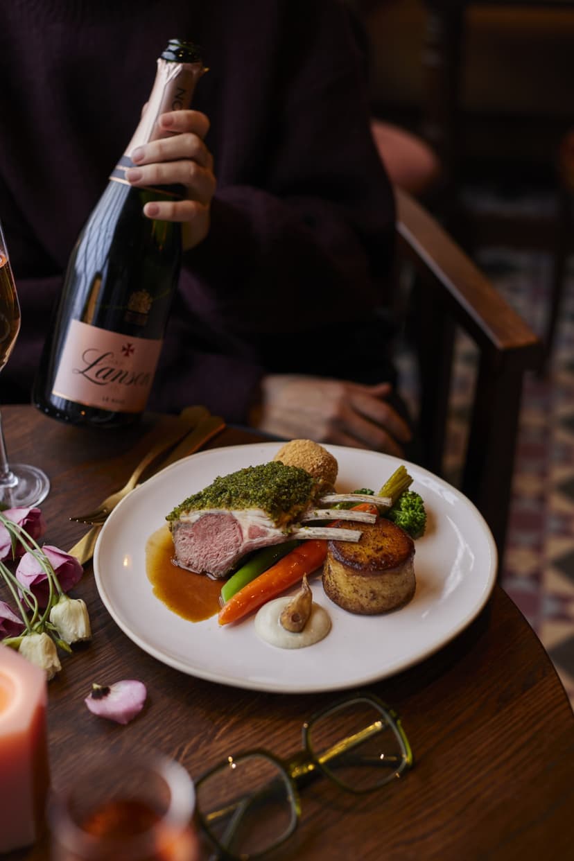 Paired with fondant potato, braised carrot, tenderstem broccoli, lamb shoulder croquette, Jerusalem artichoke purée, confit garlic and lamb jus. So good it needs no explanation. (£29.95)