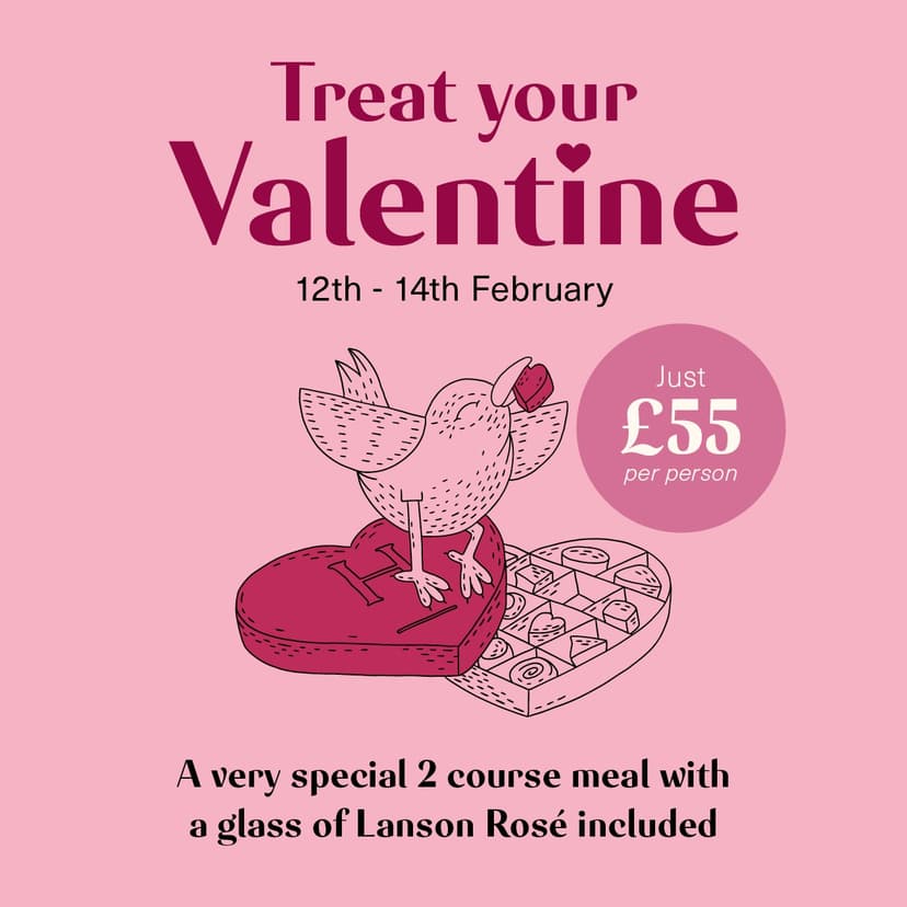 Celebrate Valentine’s at The Boot with our indulgent 2 course set menu, featuring beautifully crafted dishes and a glass of Lanson Rosé for just £55 per person.